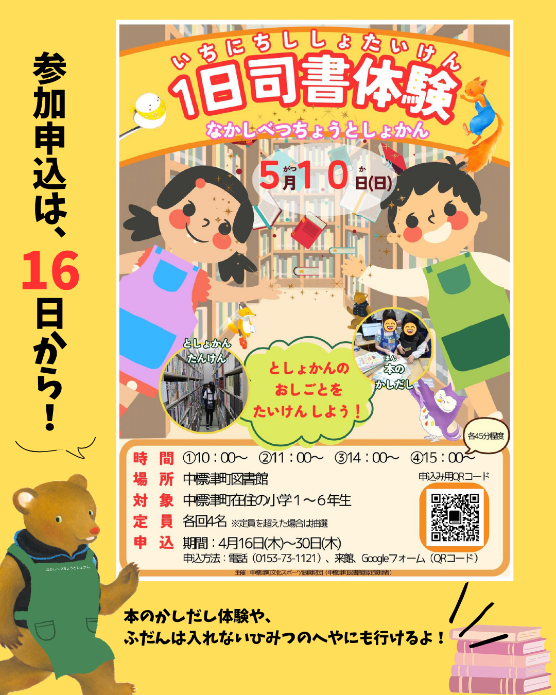申込方法:図書館カウンター・電話(☏0153-73-1121)