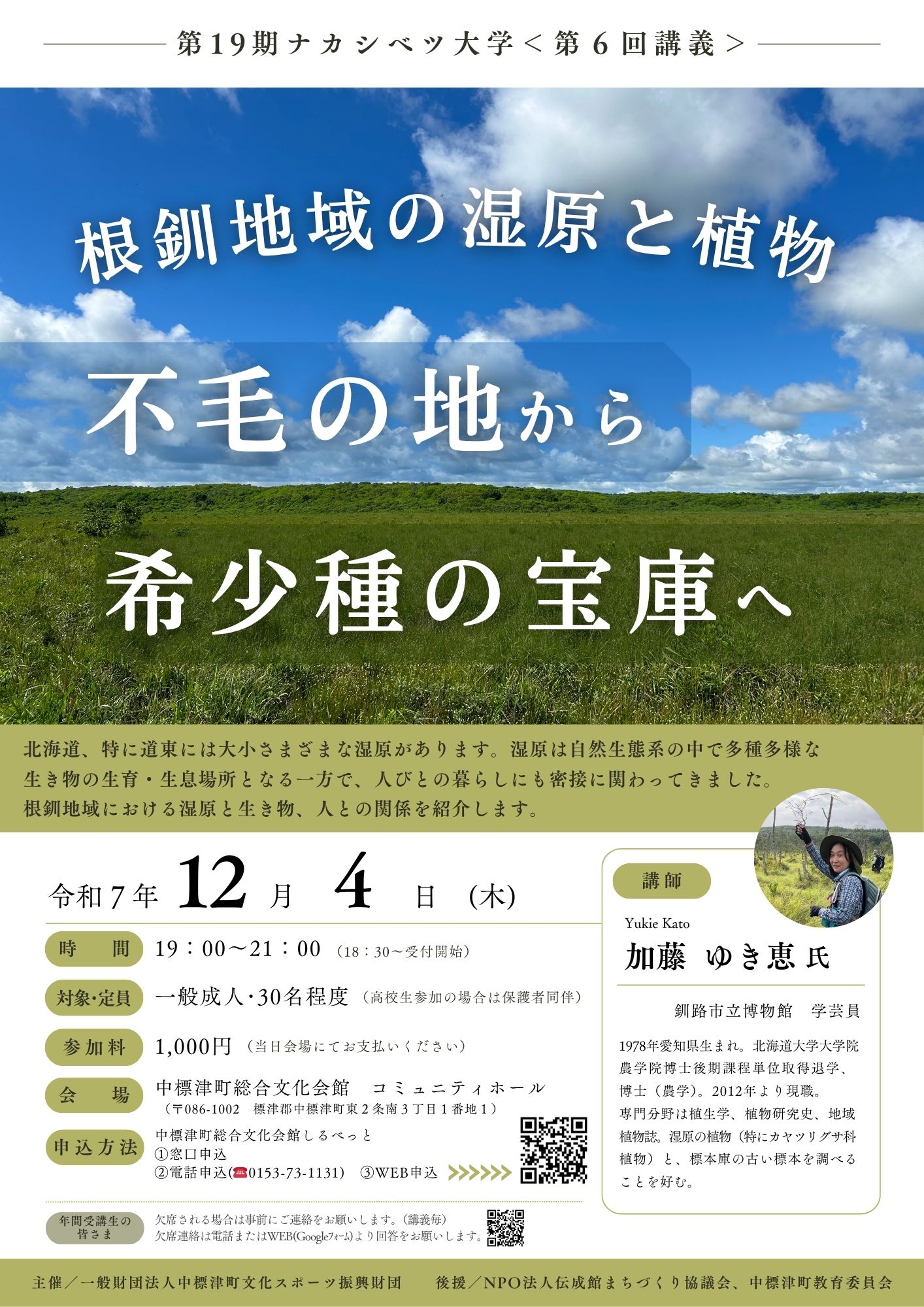 【受講生募集】ナカシベツ大学『根釧地域の湿原と植物 〜「不毛の地」から「希少種の宝庫」へ〜』