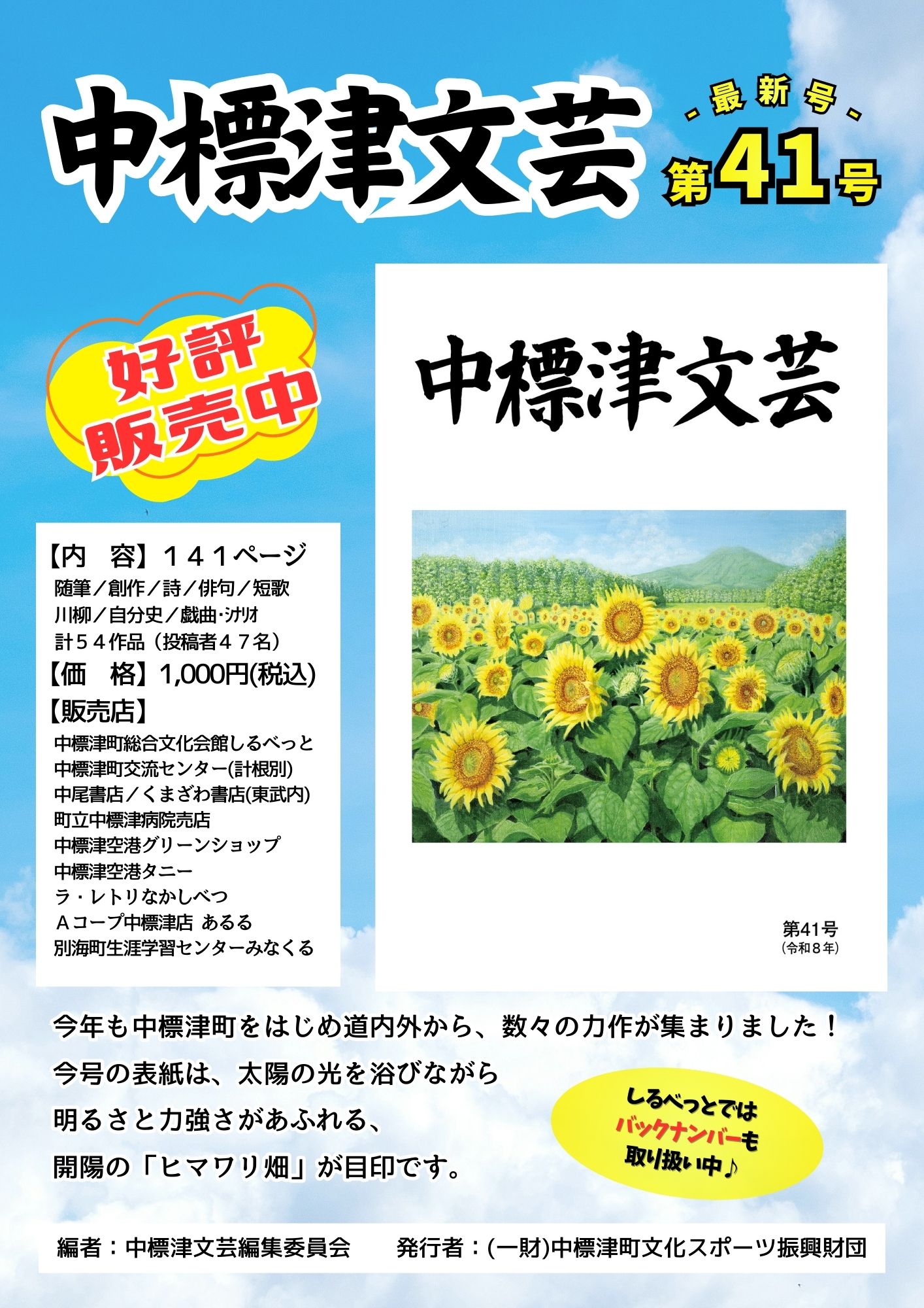 第40号を含めた中標津文芸バックナンバーは、中標津町総合文化会館しるべっと窓口にて販売中!